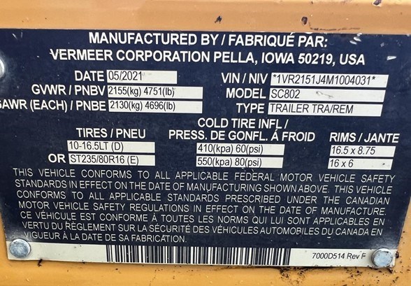 2021 Vermeer SC802 Vente
