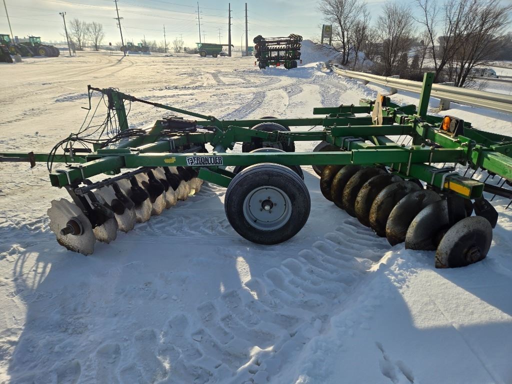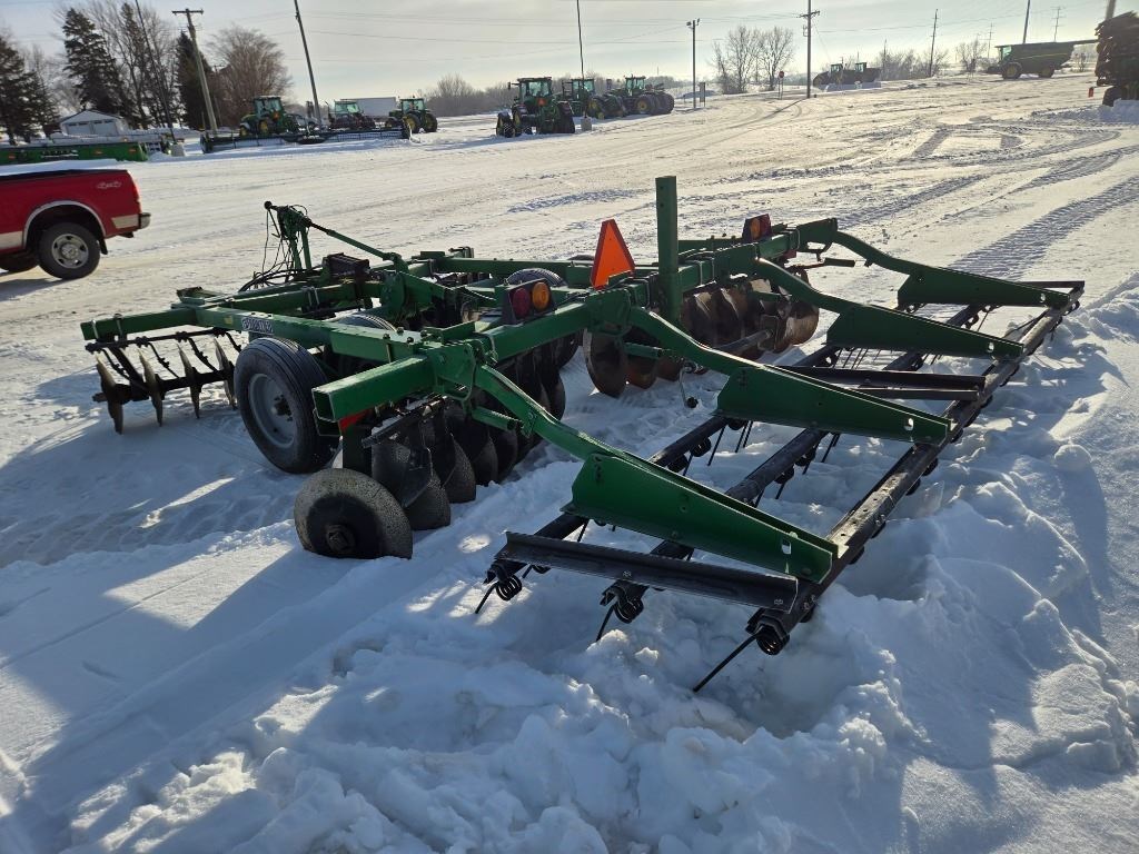 <li>12 Foot Working Width - Cone Disks - Notched Disks - 9 Inch Disk Spacing - 22 Inch Blade Diameter - Rigid Frame - Floating Hitch - Mechanical Depth Control - 3 Bar Coil Tine Harrow</li><li>Size 12 ft</li><li>Kind Rigid</li><li>Spacing 9"</li>