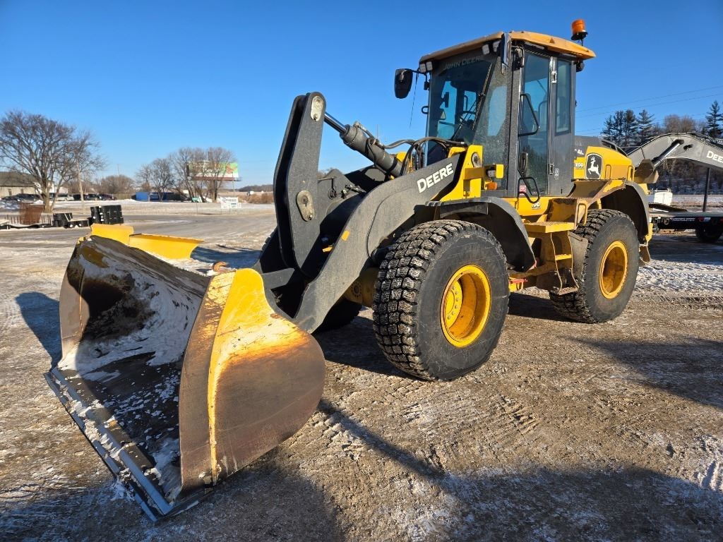 <li>4-WHEEL DRIVE LOADER - CAB/AC/HEAT - AIR SEAT - CLOTH SEAT - TC/PS - DUAL DIFF - 20.5X25 RADIALS - F FNDRS - R FNDRS - 3.0 YD GP BKT - BOE - Q CPLR JD - AUX HYD - 1LVR - RTD - RTC - RC - DRAWBAR - BTM GUARDS - RADIO - STEERING-WHEEL</li><li>Operators Station Cab w/ AC</li><li>Attachments Quick Coupler</li><li>Powertrain Dual Diff Locks</li><li>Tires 20.5 Tires</li><li>Buckets General Purpose Bkt</li>